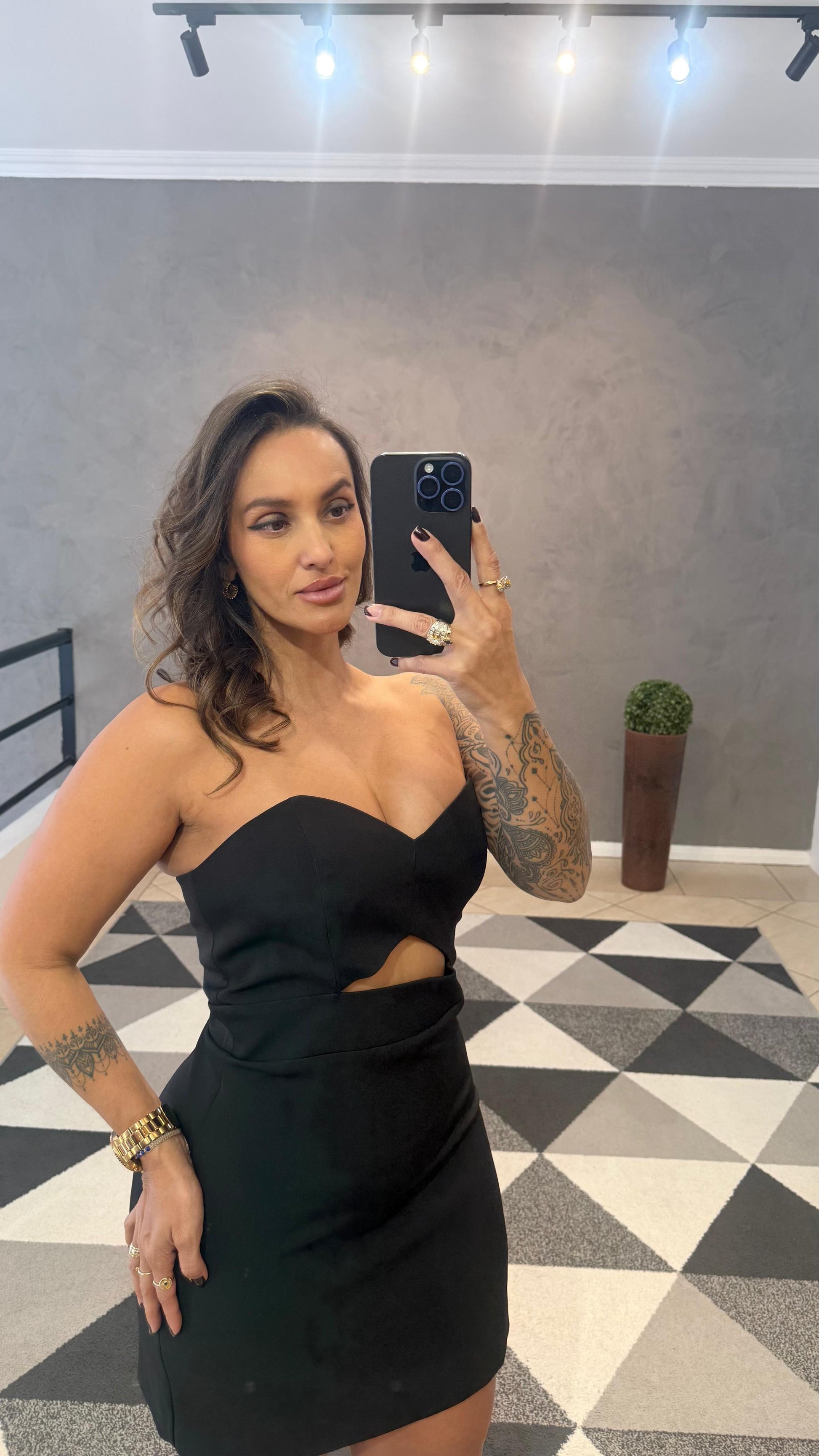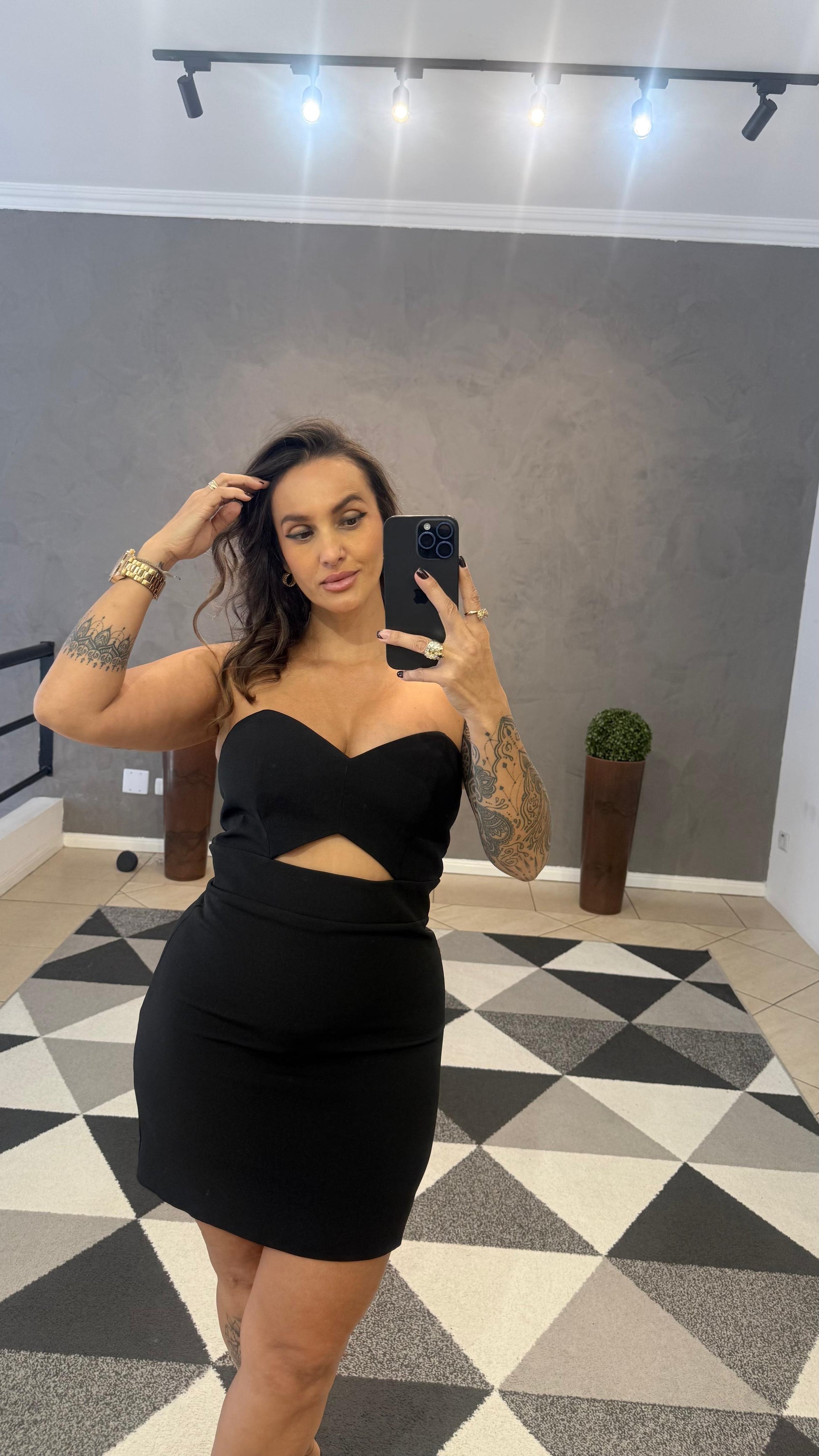 Um vestido encantador com um detalhe de flor de cetim que pode ser removida, trazendo toda delicadeza e também um toque de ousadia.