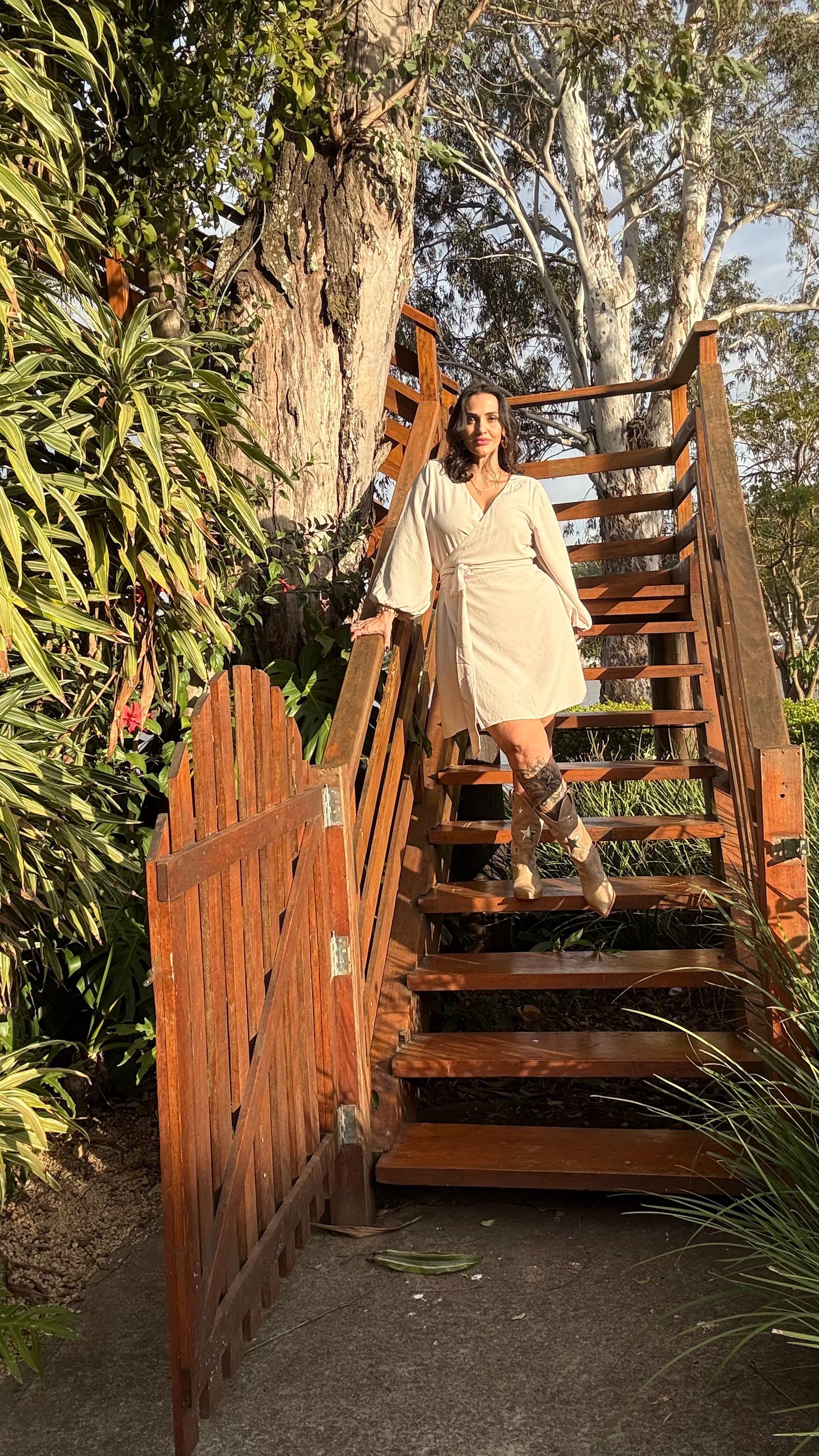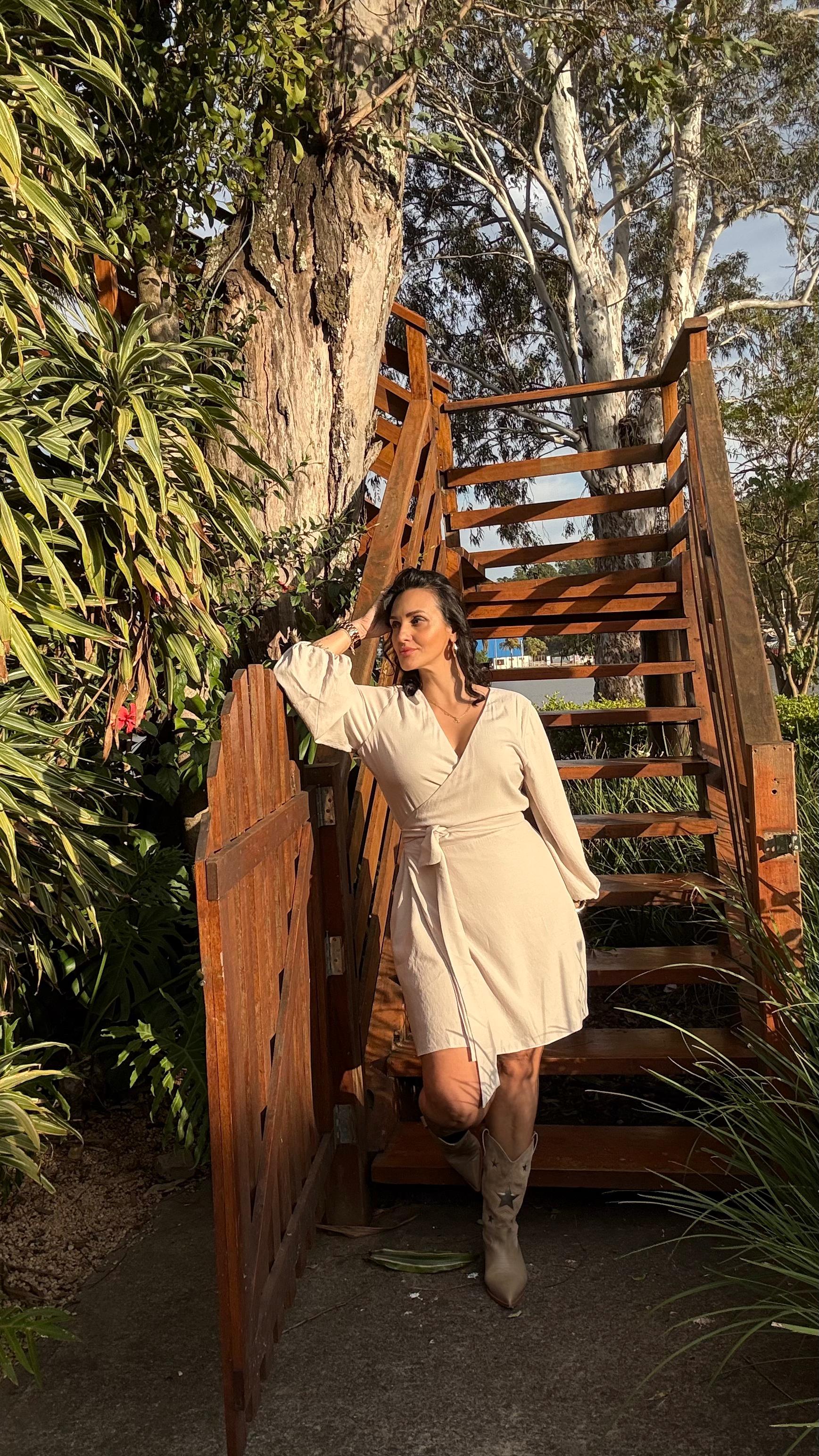 Um vestido com um estilo único, com seu transpasse que envolve o corpo com suavidade, trazendo conforto e elegância.